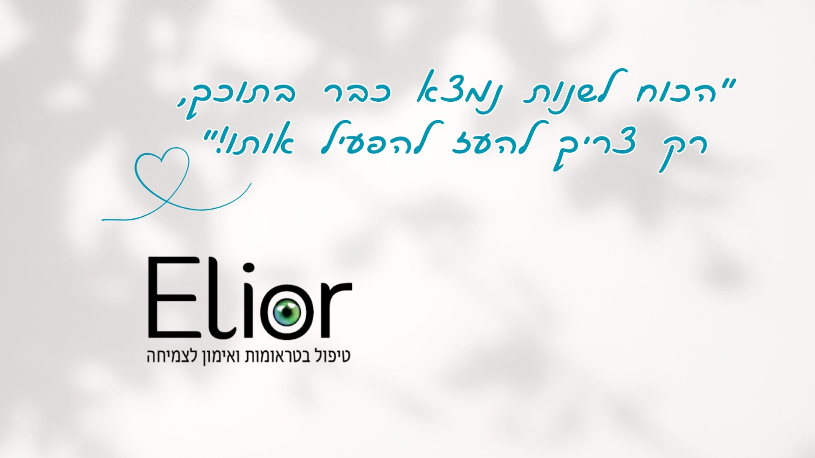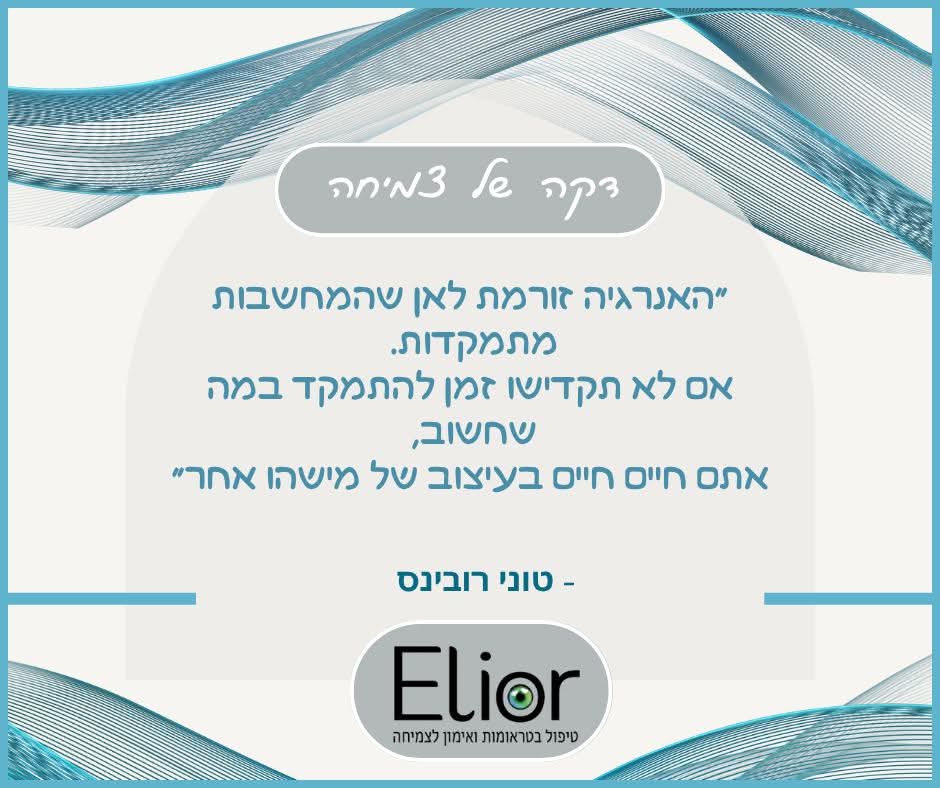 קליניקת "אליאור" מציעה כלים מעשיים לשלוט במחשבות שלך, להפחית חרדה ולהגביר את הביטחון העצמי.